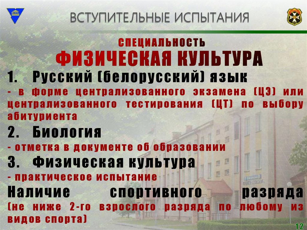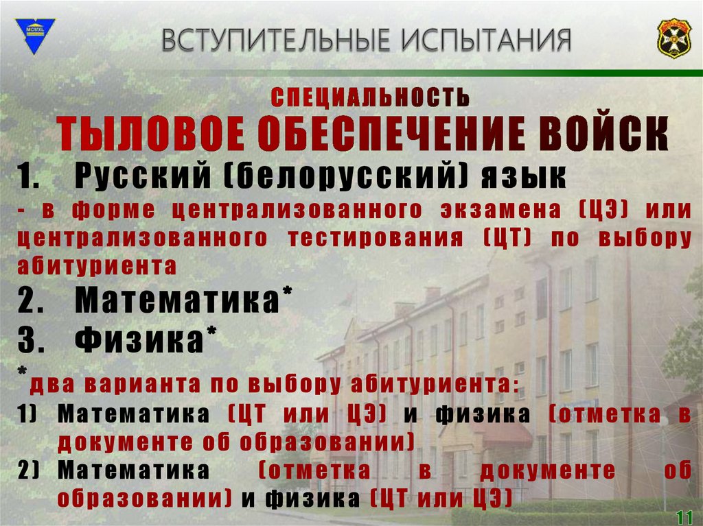 1) Математика (ЦТ или ЦЭ) и физика (отметка в