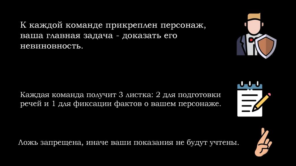 К каждой команде прикреплен персонаж,ваша главная задача - доказать его