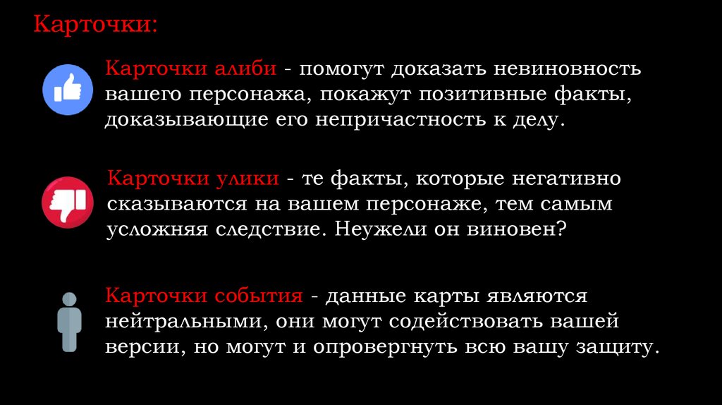 Карточки улики - те факты, которые негативно