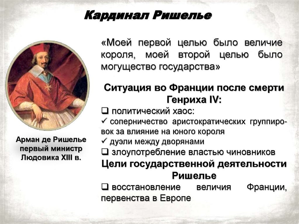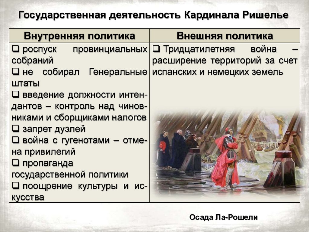 Государственная деятельность Кардинала РишельеВнутренняя политика