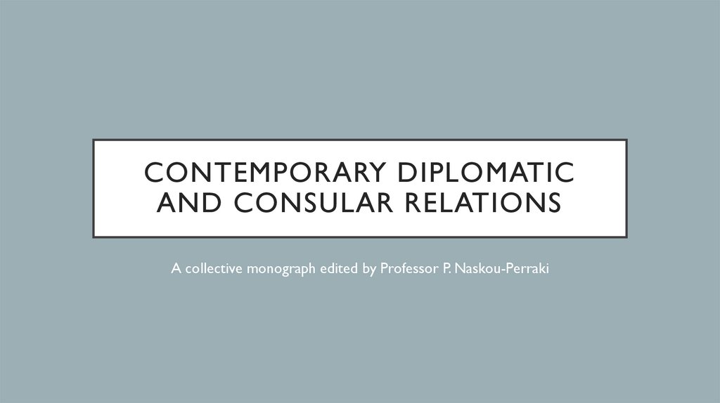 CONTEMPORARY DIPLOMATICAND CONSULAR RELATIONS