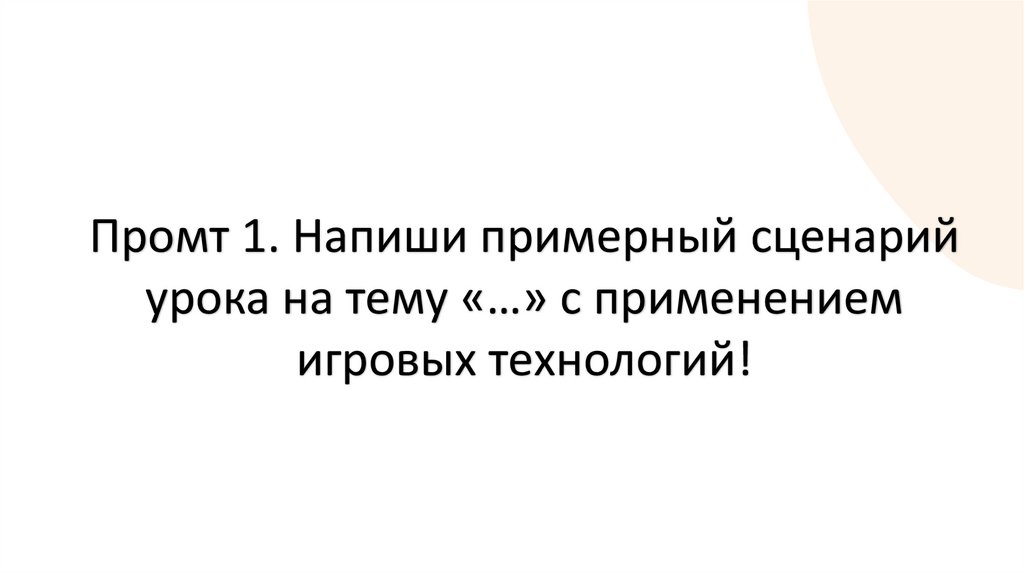 Промт 1. Напиши примерный сценарийурока на тему «…» c применением