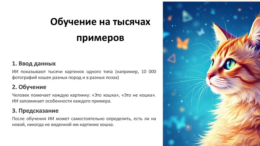 Человек помечает каждую картинку: «Это кошка», «Это не кошка».