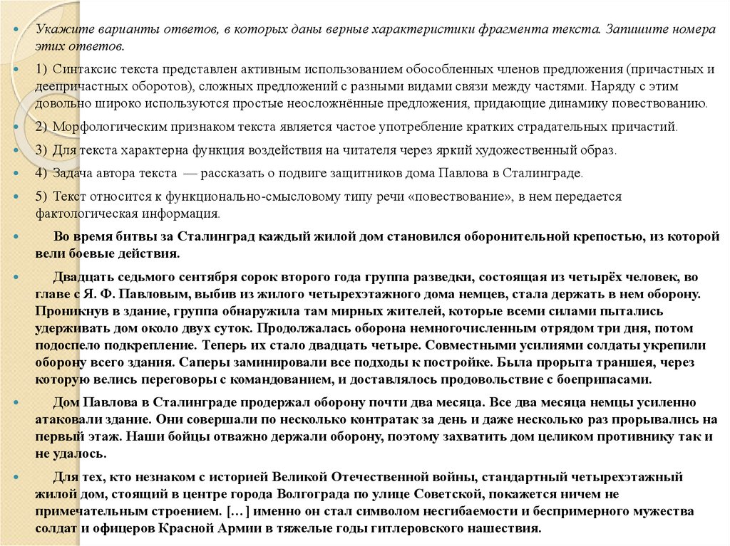 4) Задача автора текста — рассказать о подвиге защитников дома Павлова в Сталинграде.