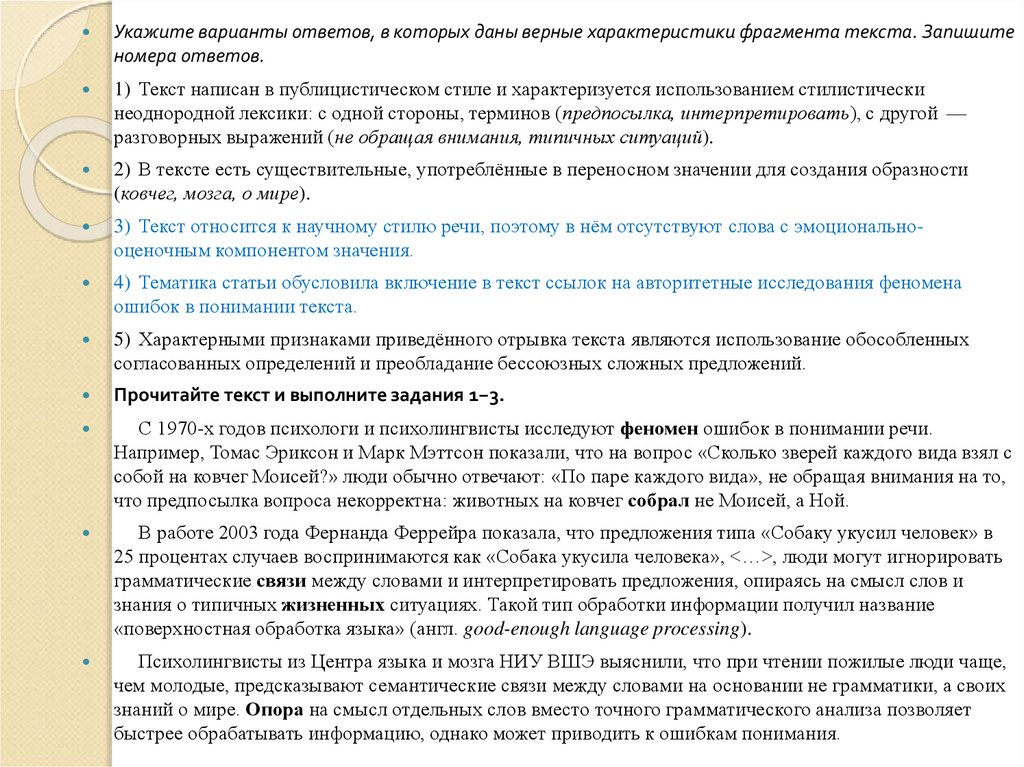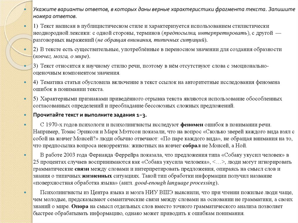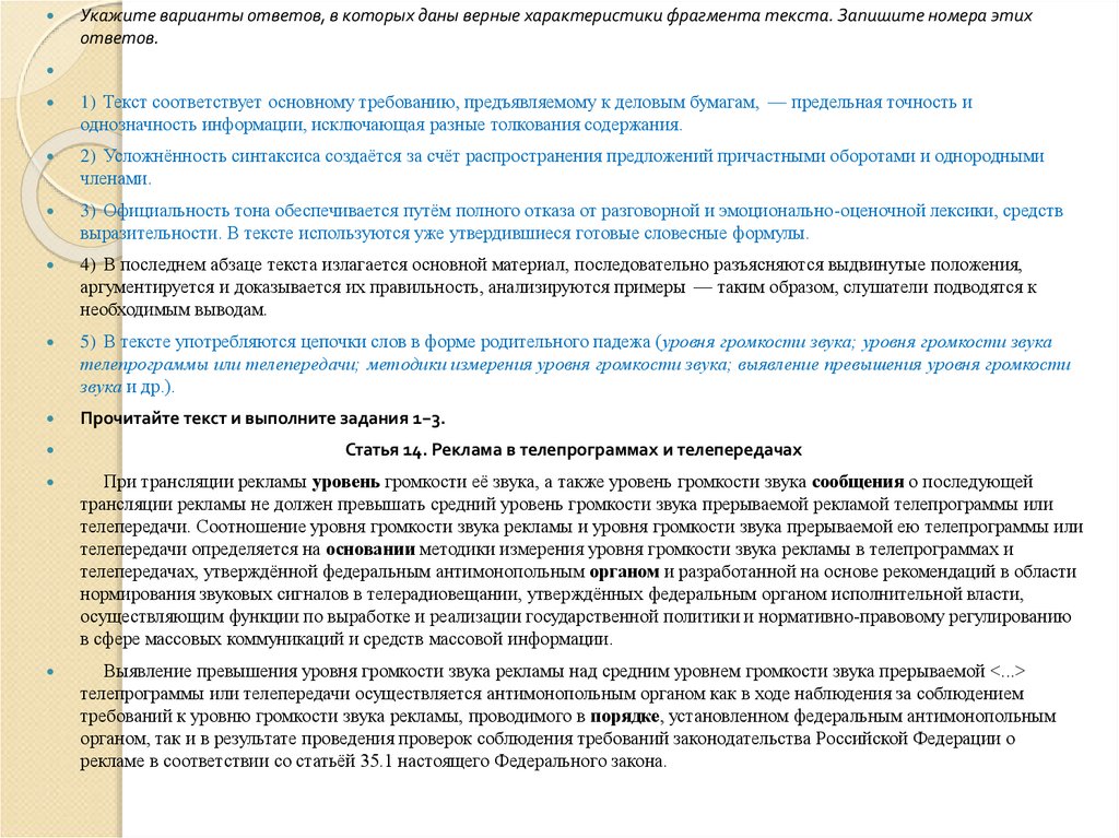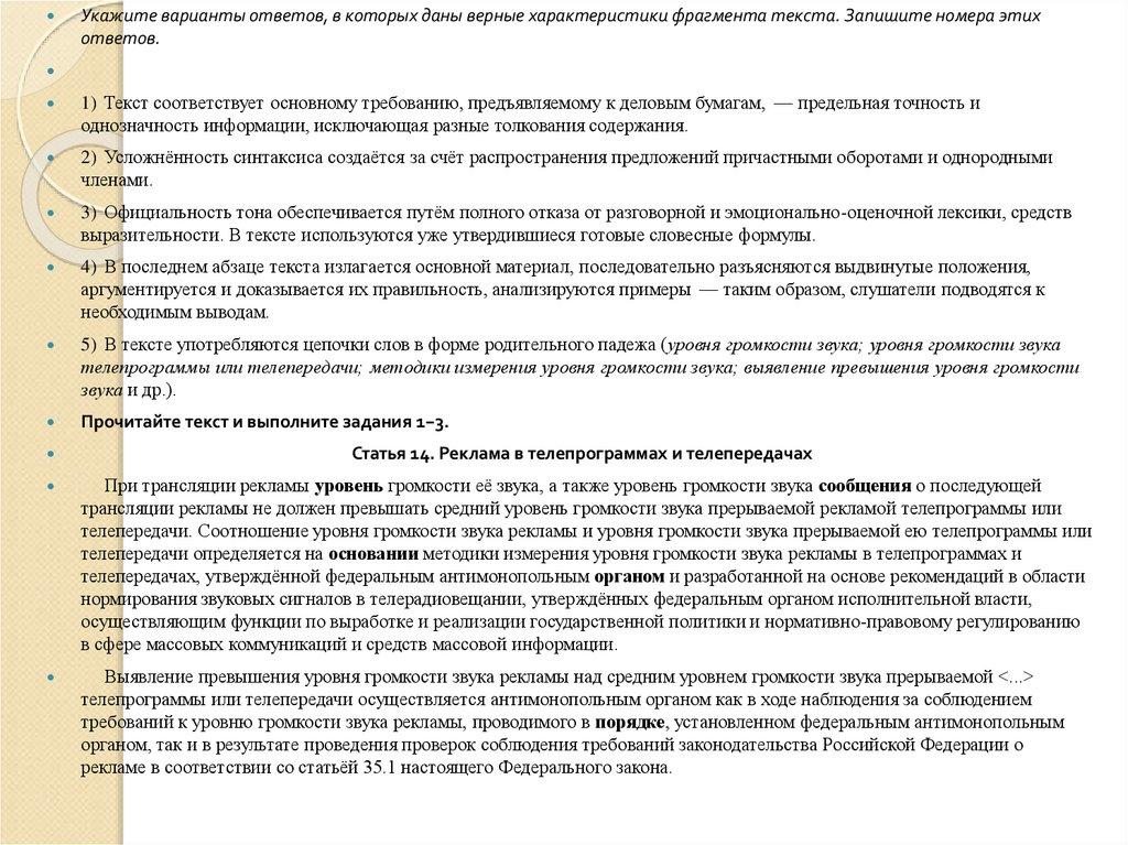 Укажите варианты ответов, в которых даны верные характеристики фрагмента текста. Запишите номера этихответов.