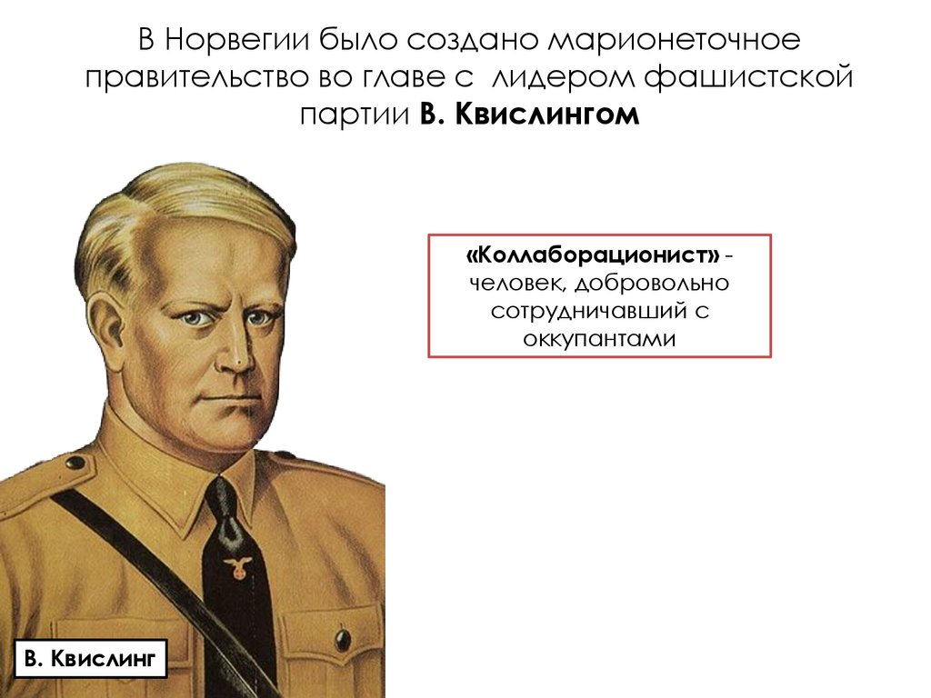 В Норвегии было создано марионеточноеправительство во главе с лидером фашистской