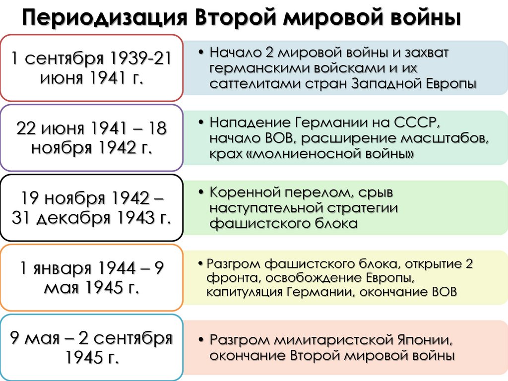 Периодизация Второй мировой войны1 сентября 1939-21