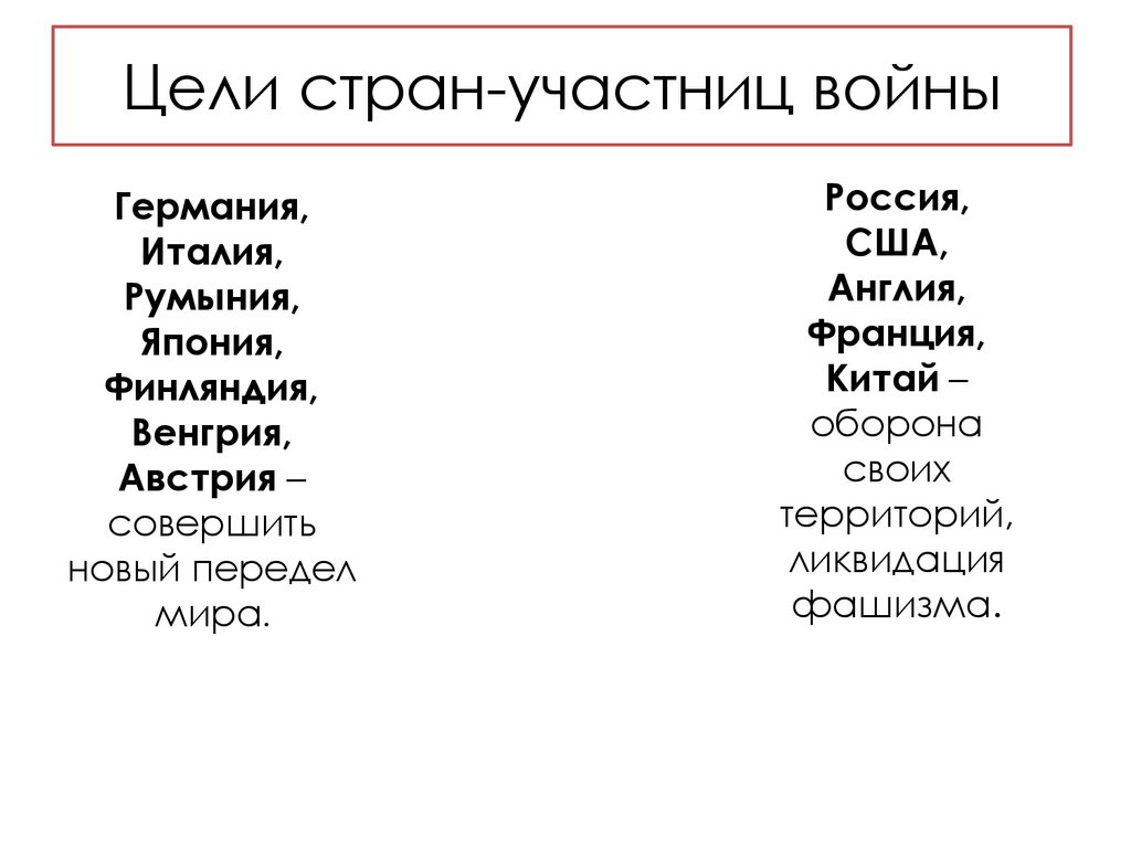 Цели стран-участниц войныГермания,