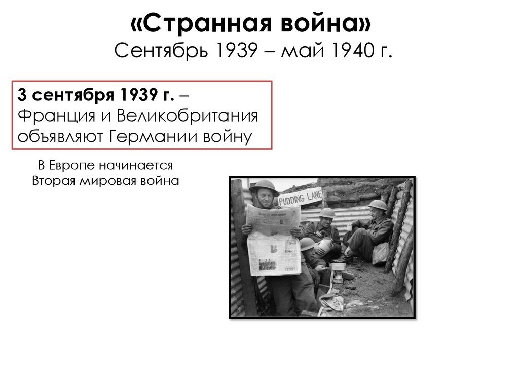 «Странная война»Сентябрь 1939 – май 1940 г.