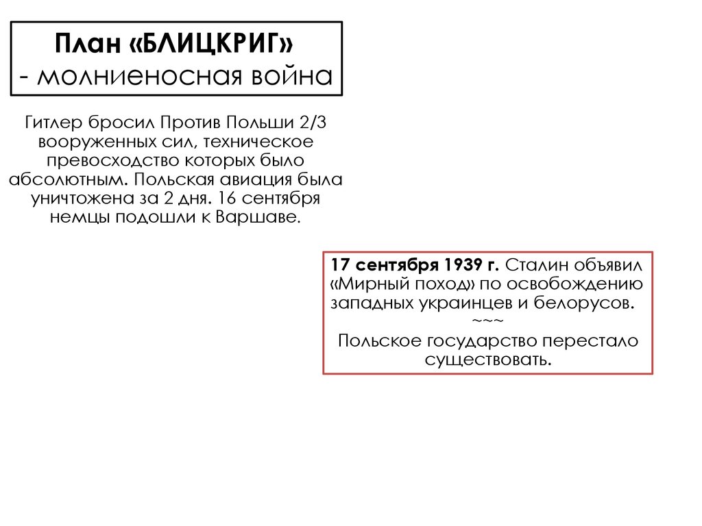 План «БЛИЦКРИГ»- молниеносная война