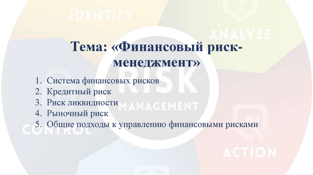 Процесс финансового рискменеджмента — это организованнаяпоследовательность действий,