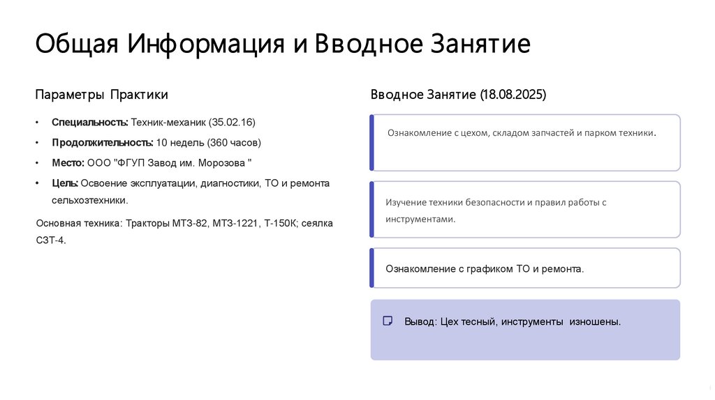 Общая Информация и Вводное ЗанятиеПараметры Практики