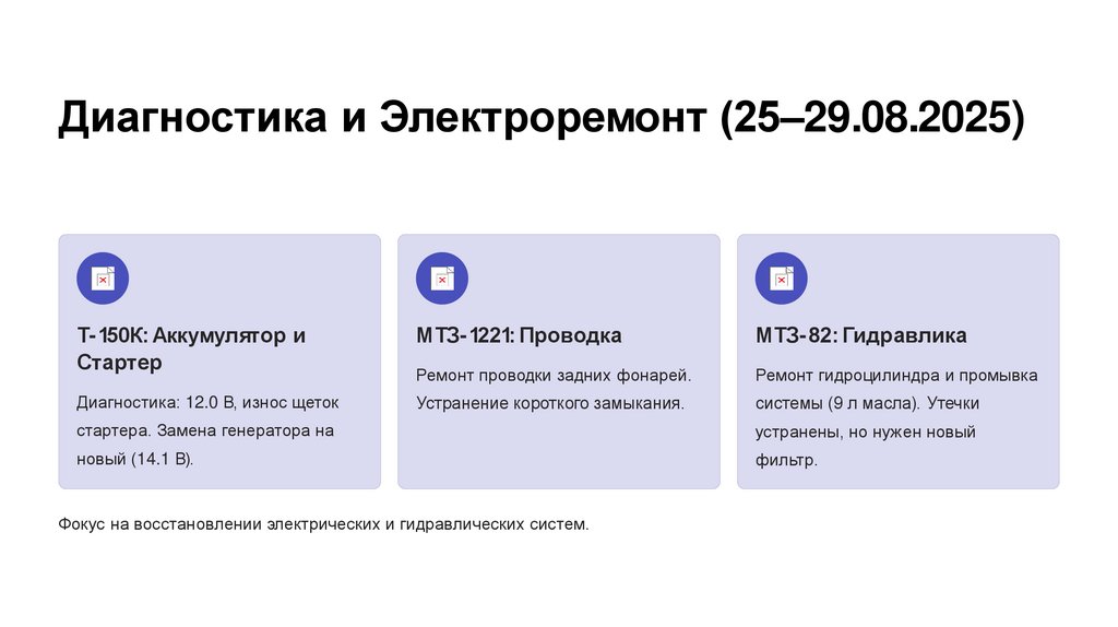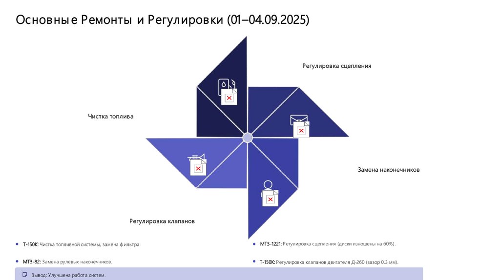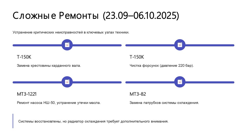 Сложны е Ремонты (23.09–06.10.2025)Устранение критических неисправностей в ключевых узлах техники.