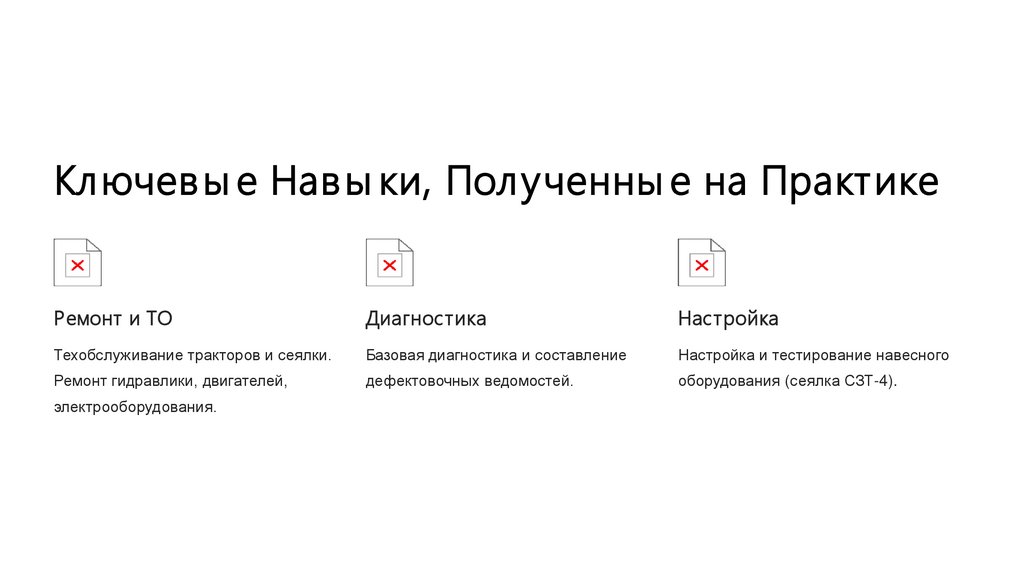 Ключевы е Нав ы ки, Полученны е на ПрактикеРемонт и ТО