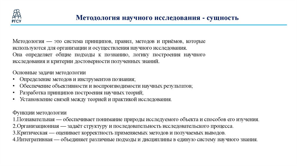 Методология научного исследования - сущностьМетодология — это система принципов, правил, методов и приёмов, которые