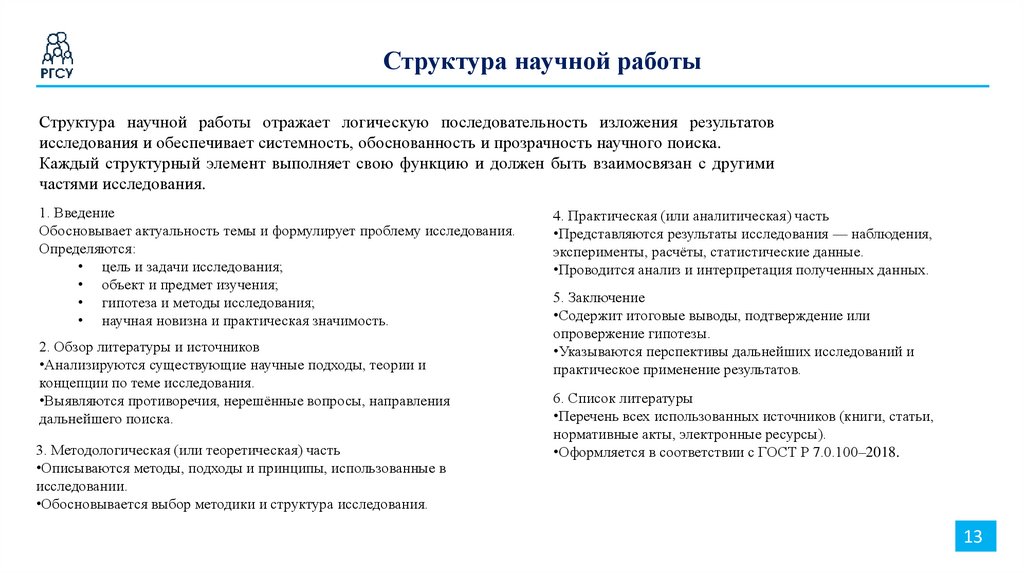 Структура научной работыСтруктура научной работы отражает логическую последовательность изложения результатов