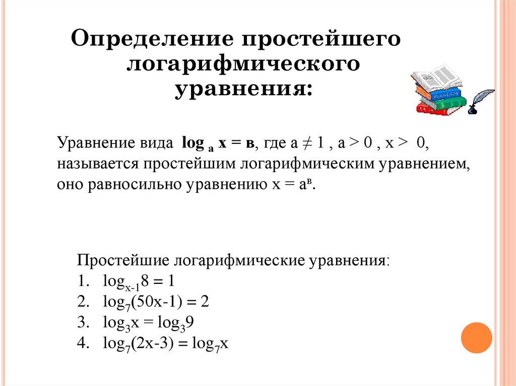 уравнение log а х = b (а > 0, а≠ 1, х>0 )