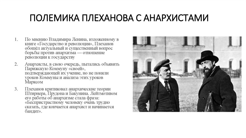 ПОЛЕМИКА ПЛЕХАНОВА С АНАРХИСТАМИ1.