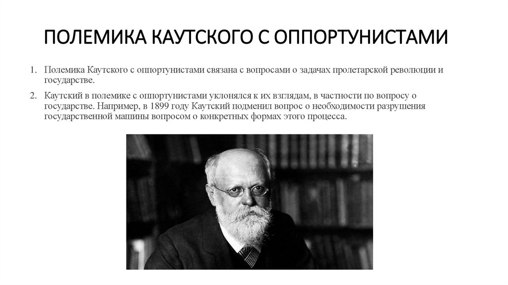 2. Каутский в полемике с оппортунистами уклонялся к их взглядам, в частности по вопросу о