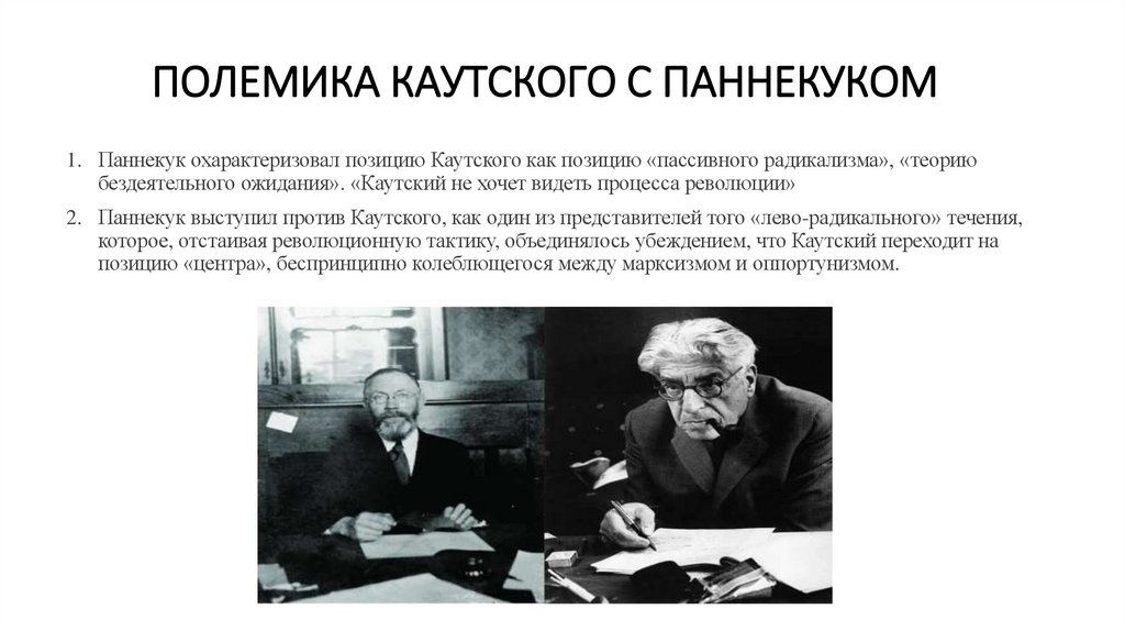 ПОЛЕМИКА КАУТСКОГО С ПАННЕКУКОМ1. Паннекук охарактеризовал позицию Каутского как позицию «пассивного радикализма», «теорию