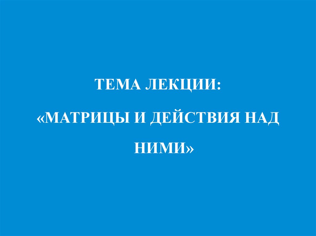 ТЕМА ЛЕКЦИИ:«МАТРИЦЫ И ДЕЙСТВИЯ НАД