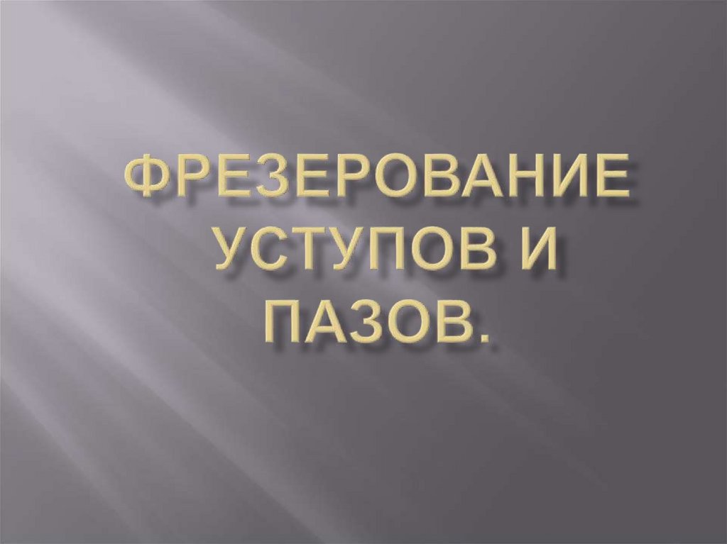1. ФРЕЗЕРОВАНИЕ УСТУПОВ и ПАЗОВ.
