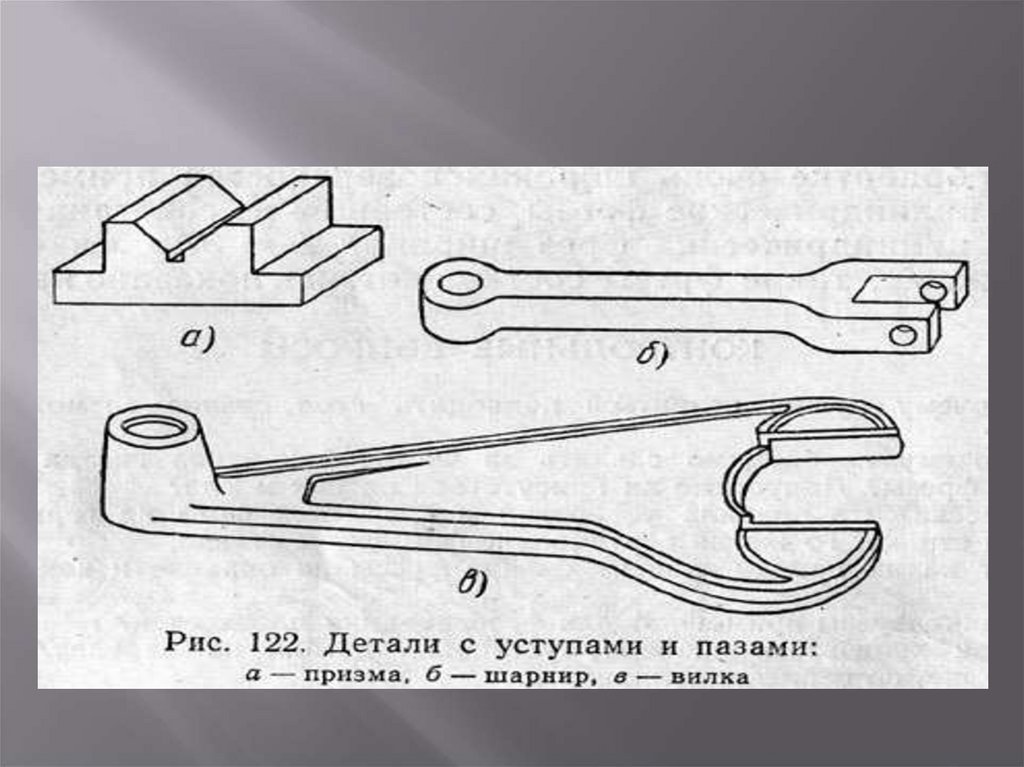 3. Уступом называют выемку, ограниченную двумя взаимно перпендикулярными плоскостями, образующими ступень. Деталь может иметь