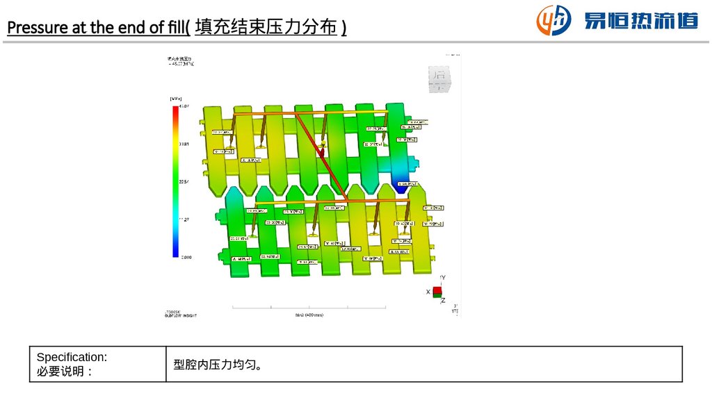 Pressure at the end of fill( 填充结束压力分布 )Specification: