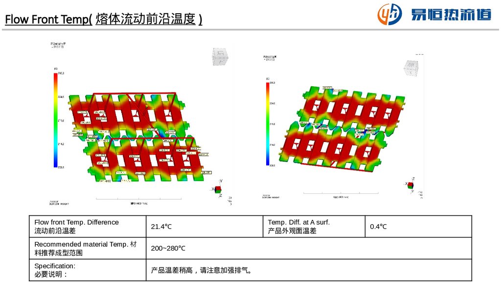 Flow Front Temp( 熔体流动前沿温度 )Flow front Temp. Difference
