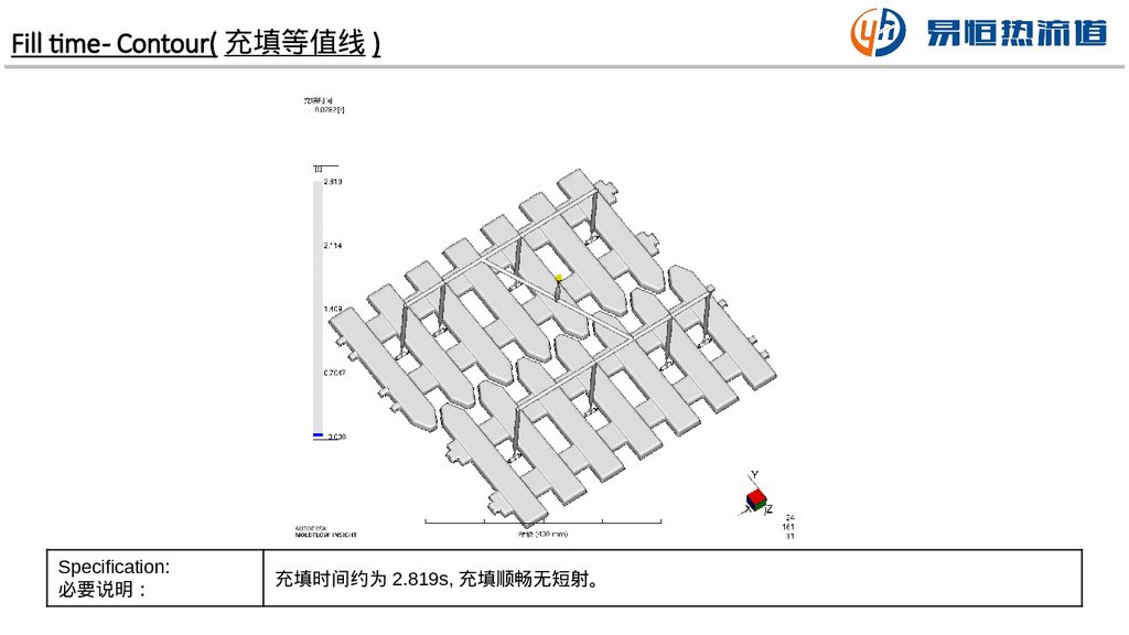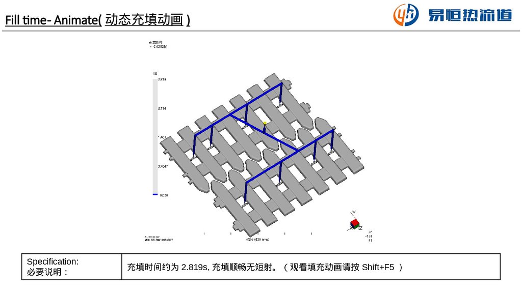 充填时间约为 2.819s, 充填顺畅无短射。 观看填充动画请按 Shift+F5
