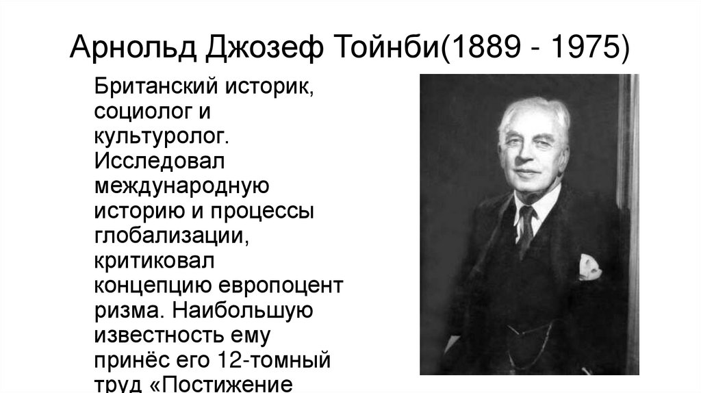 Арнольд Джозеф Тойнби(1889 - 1975)Британский историк,