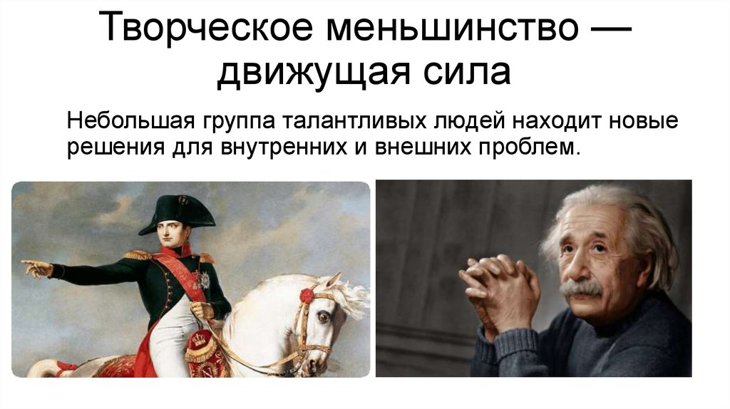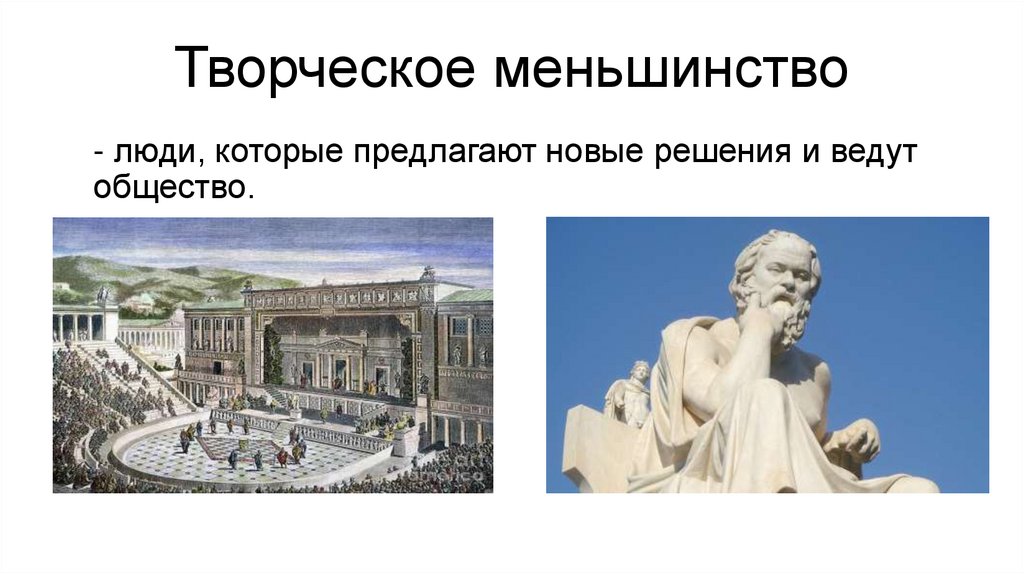 Творческое меньшинство- люди, которые предлагают новые решения и ведут