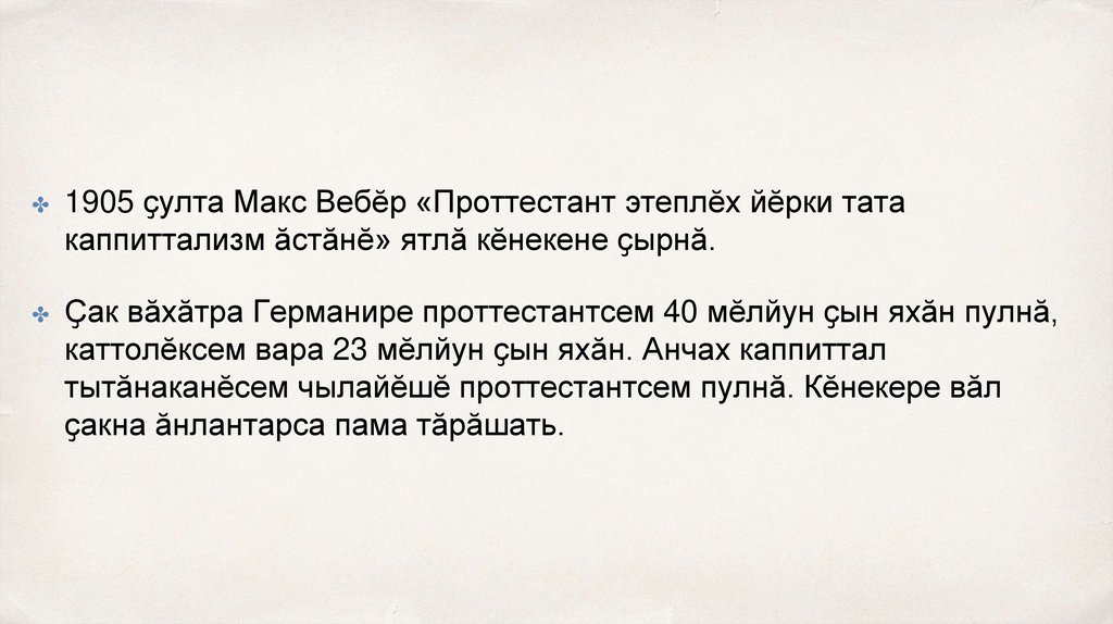 ✤ 1905 ҫулта Макс Вебӗр «Проттестант этеплӗх йӗрки татакаппиттализм ӑстӑнӗ» ятлӑ кӗнекене ҫырнӑ.