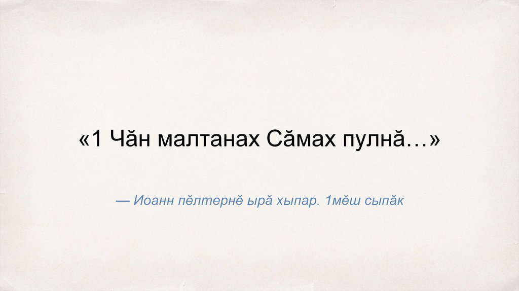«1 Чӑн малтанах Сӑмах пулнӑ…»— Иоанн пӗлтернӗ ырӑ хыпар. 1мӗш сыпӑк
