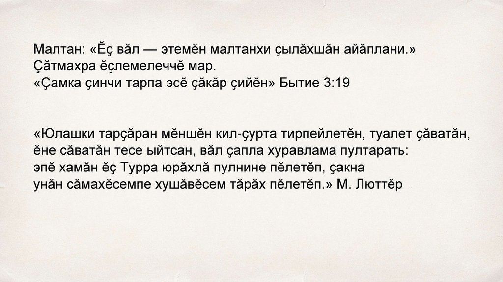 Малтан: «Ӗҫ вӑл — этемӗн малтанхи ҫылӑхшӑн айӑплани.»Çăтмахра ӗҫлемелеччӗ мар.