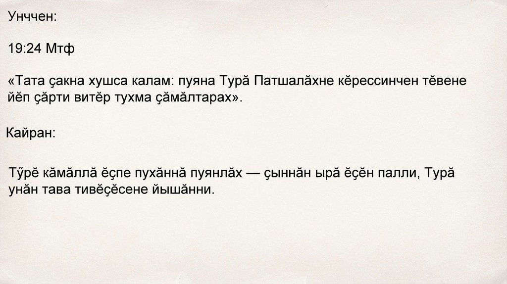 «Тата ҫакна хушса калам: пуяна Турӑ Патшалӑхне кӗрессинчен тӗвене