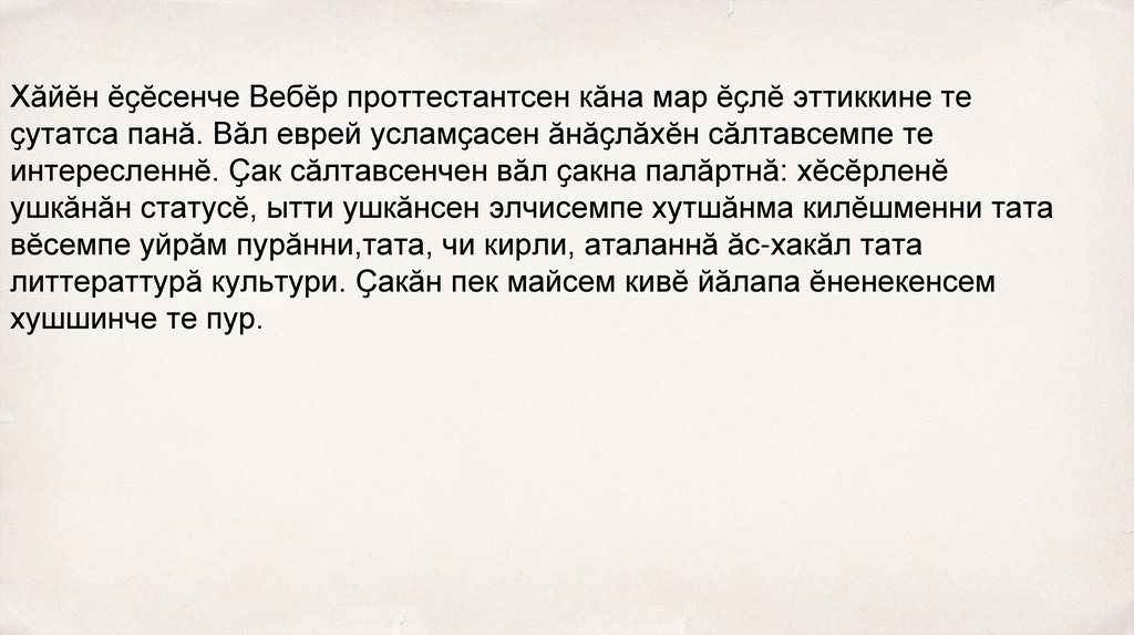 Хӑйӗн ӗҫӗсенче Вебӗр проттестантсен кӑна мар ӗҫлӗ эттиккине теҫутатса панӑ. Вӑл еврей усламҫасен ӑнӑҫлӑхӗн сӑлтавсемпе те