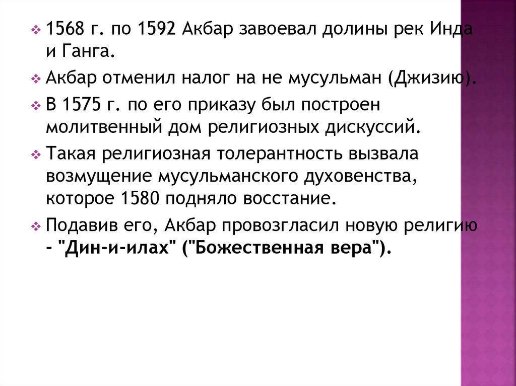 1568 г. по 1592 Акбар завоевал долины рек Индаи Ганга.