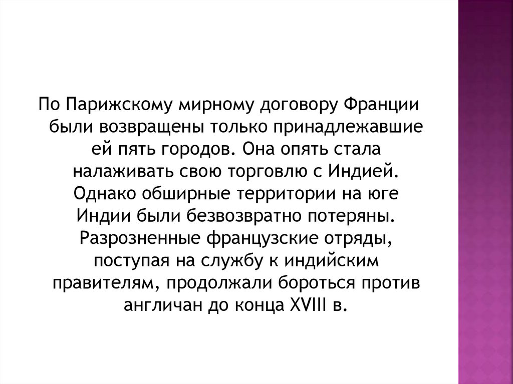 По Парижскому мирному договору Франциибыли возвращены только принадлежавшие