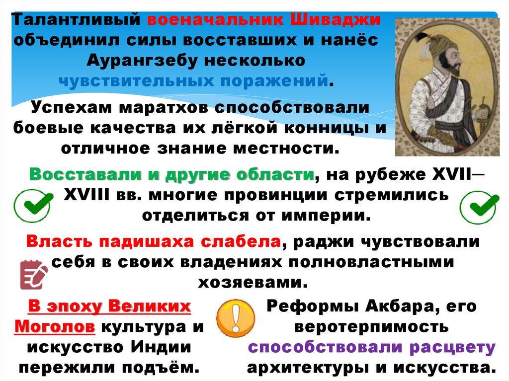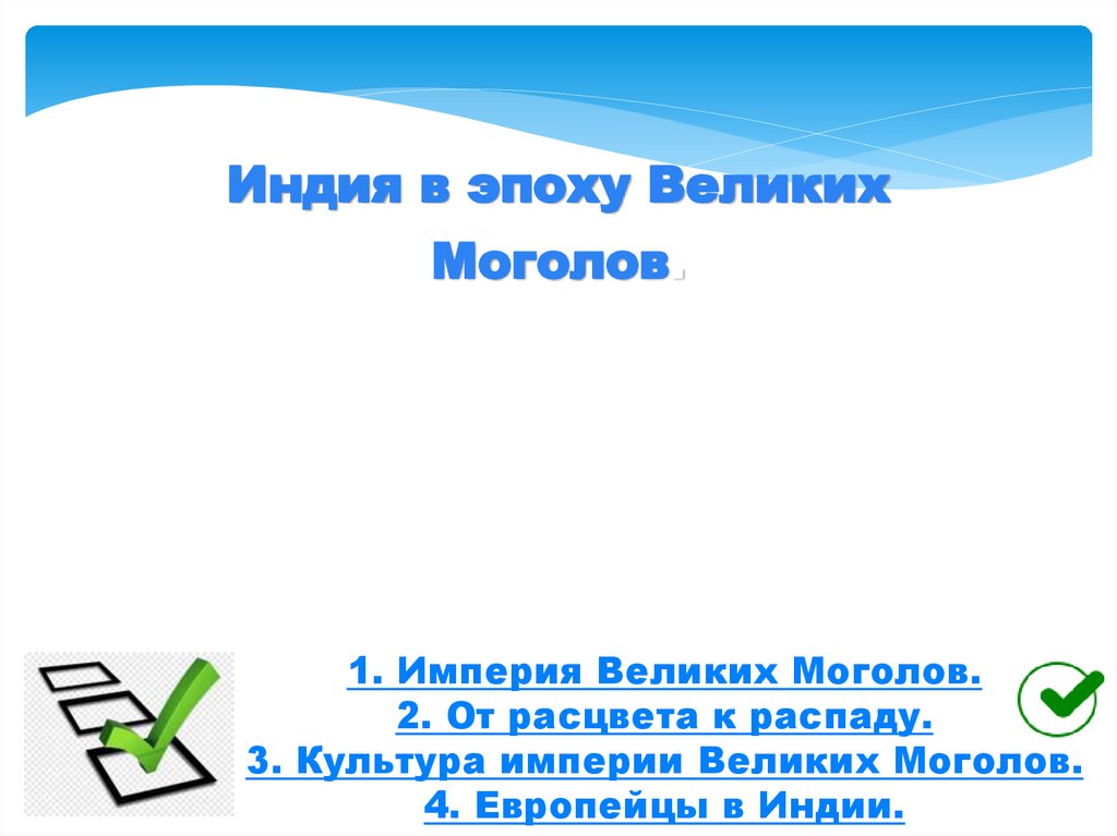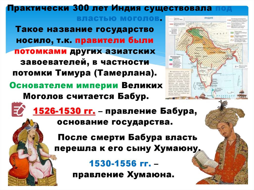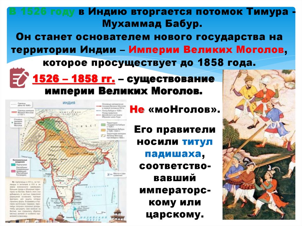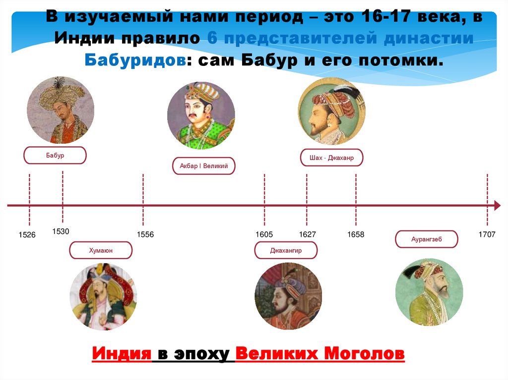 В изучаемый нами период – это 16-17 века, вИндии правило 6 представителей династии
