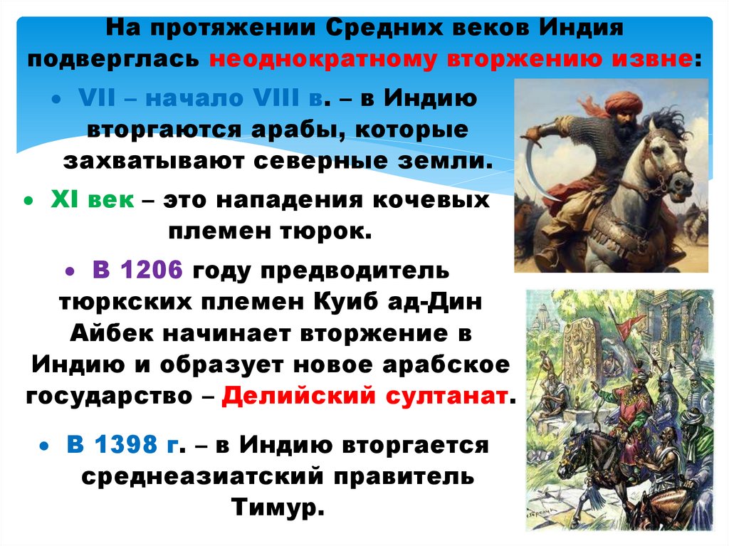 На протяжении Средних веков Индияподверглась неоднократному вторжению извне: