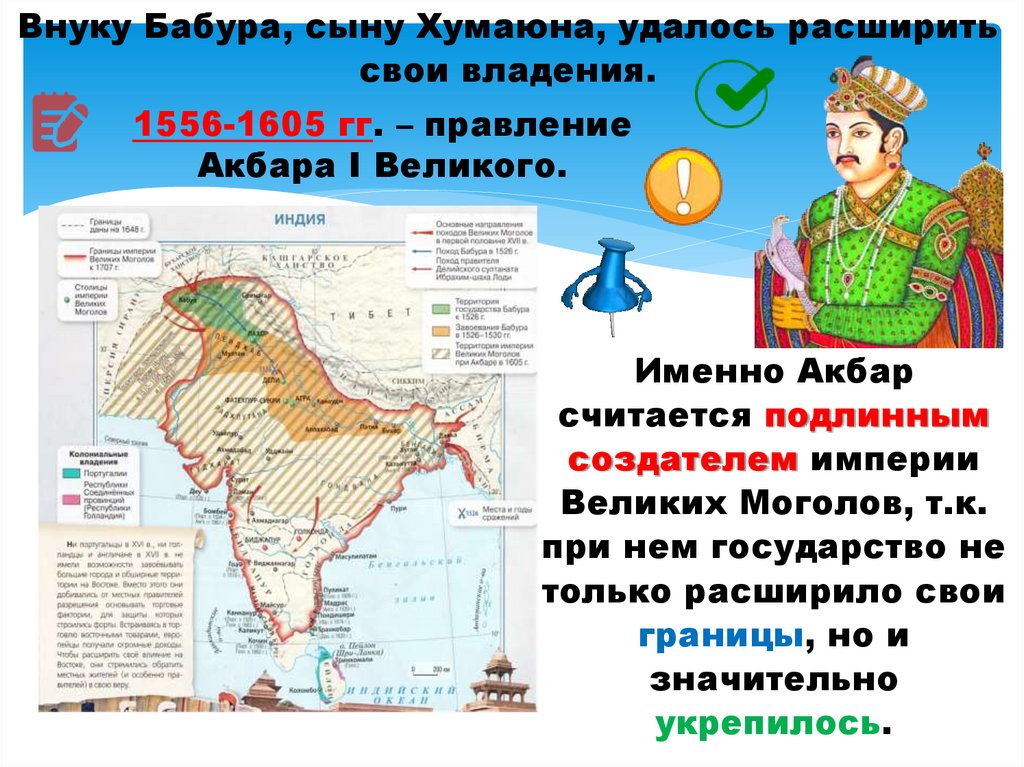 Внуку Бабура, сыну Хумаюна, удалось расширитьсвои владения.