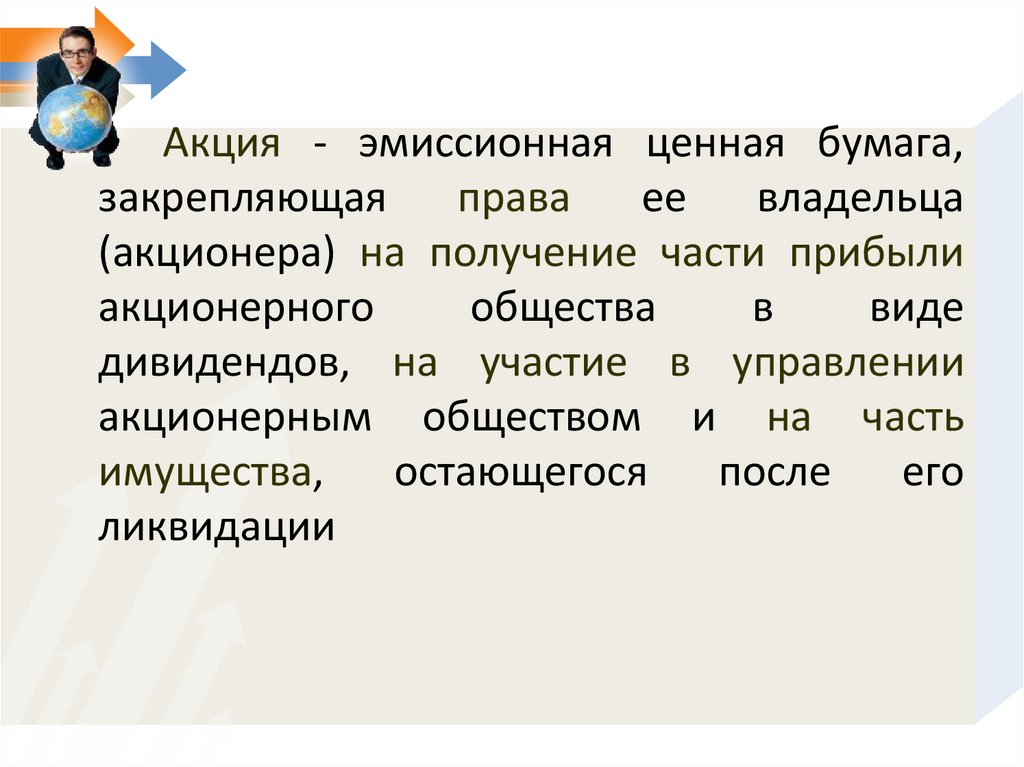 Акция - эмиссионная ценная бумага,закрепляющая