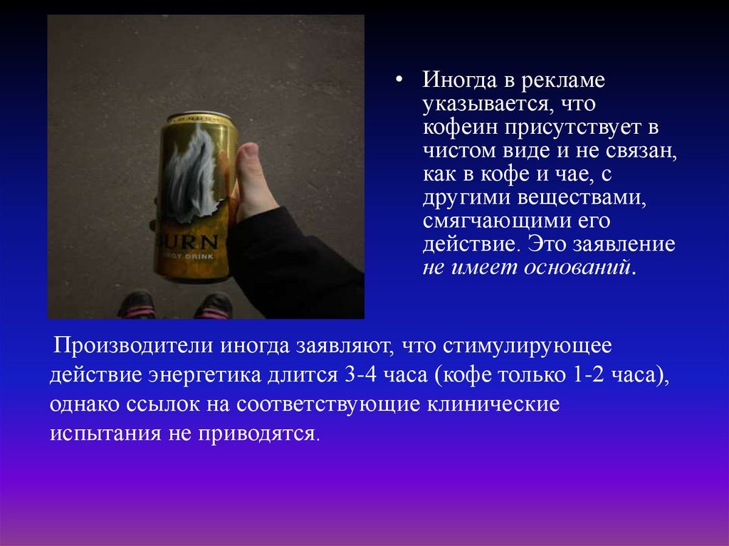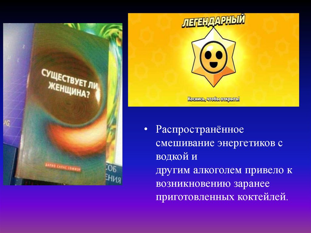 • Энергетические напитки иногда смешивают с алкоголем.• Энергетики выполняют стимулирующую функцию, в то