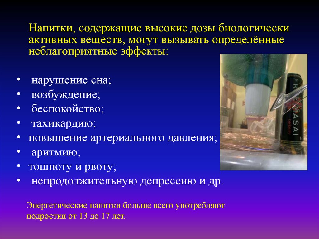 Напитки, содержащие высокие дозы биологическиактивных веществ, могут вызывать определённые
