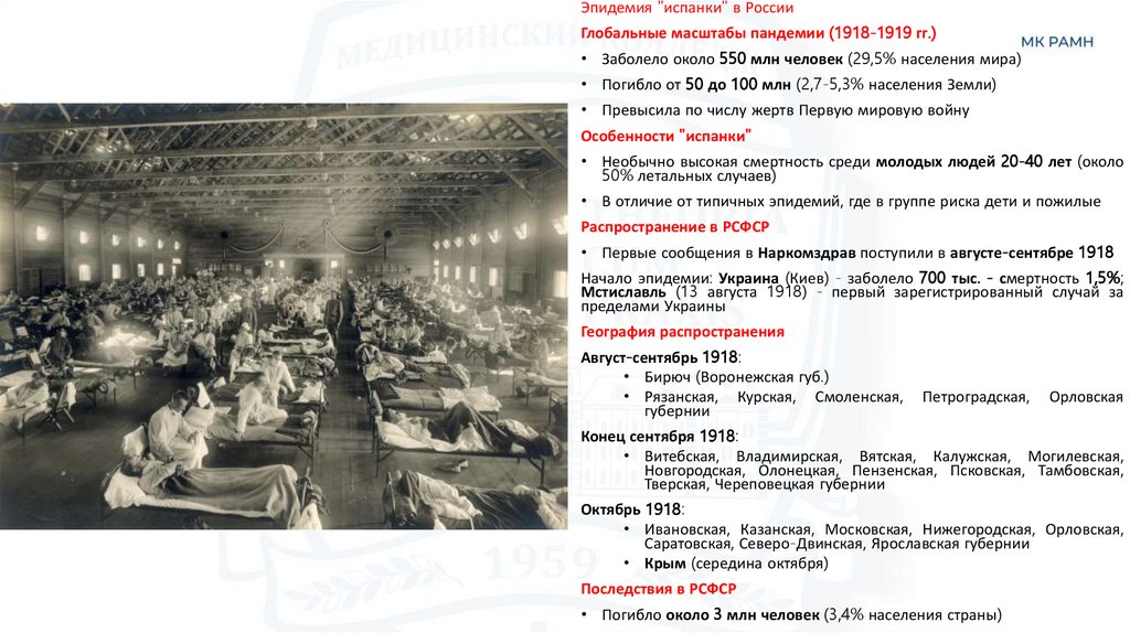 Эпидемия "испанки" в РоссииГлобальные масштабы пандемии (1918-1919 гг.)