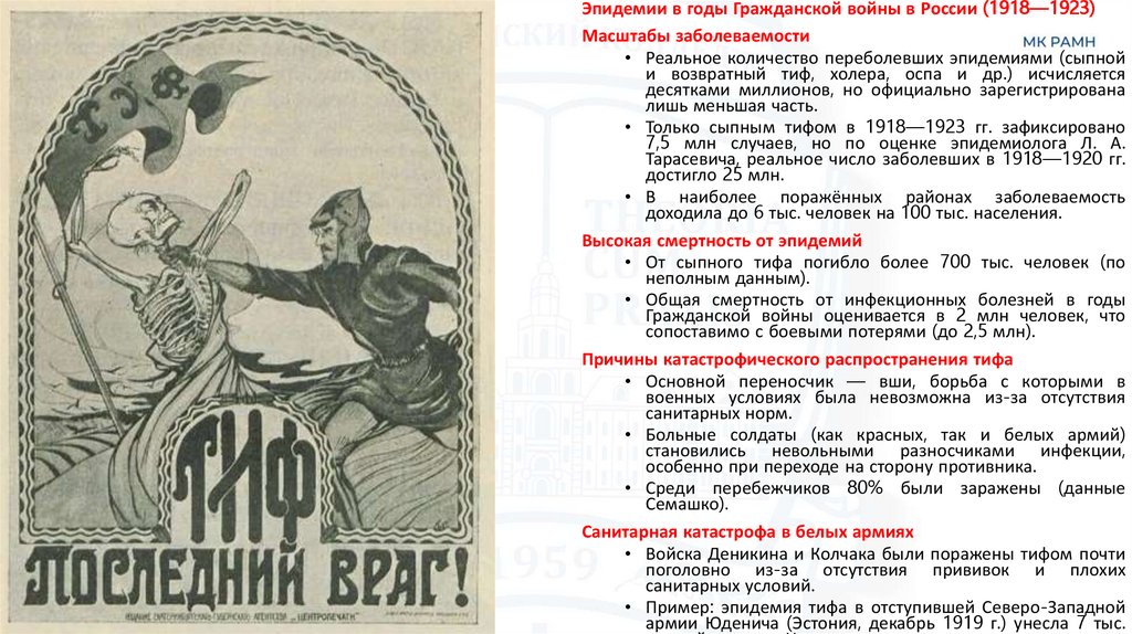 • Только сыпным тифом в 1918—1923 гг. зафиксировано