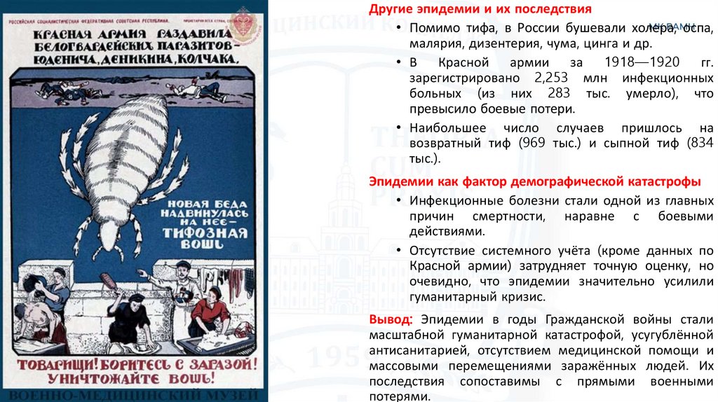 • В. И. Ленин подчёркивал критическую опасность эпидемий,