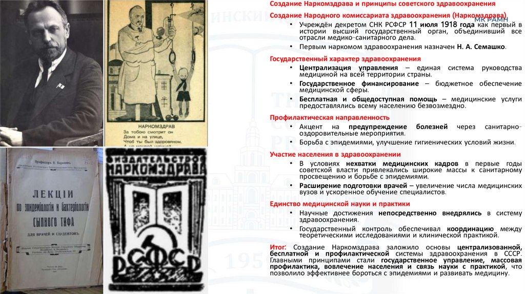 Создание Наркомздрава и принципы советского здравоохраненияСоздание Народного комиссариата здравоохранения (Наркомздрава)