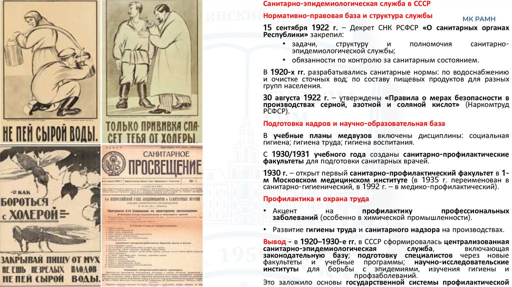 • Развитие гигиены труда и санитарного надзора на производствах.